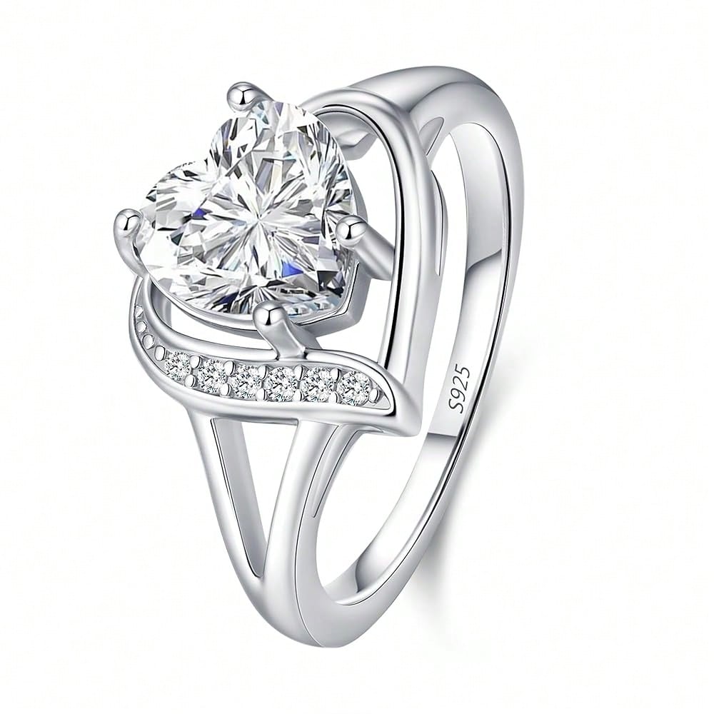 Engagement Rings For Women AAA+ Heart Cubic Zirconia Promise Rings For Her Black Halloween Jewelry/1.5CT Moissanite Rings Women's Wedding Statement Ring Birthday Gifts For Women, Size 5-9-7637