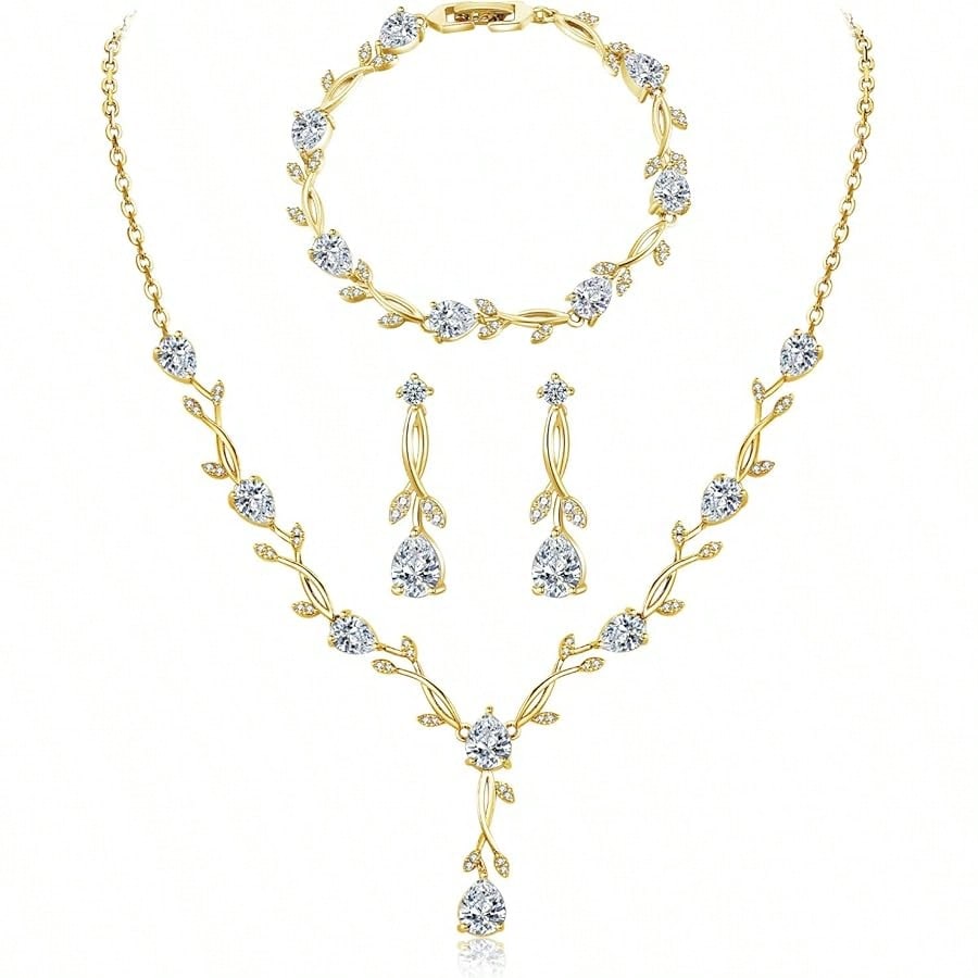 Color: Necklace+Braclelet+Earrings-gold Plated Style